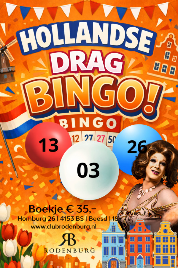 Op vrijdag 13 maart is het weer tijd voor een nieuwe bingo-avond! Deze keer een Hollandse bingo met Miss Kitty Glamourus en Miss Christine Carrington.